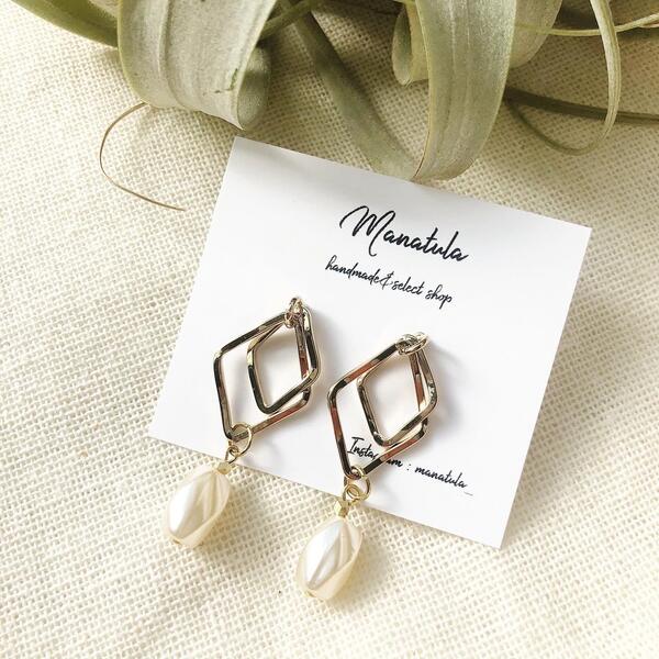 【2連スクエアフープ×パールピアス】フープピアス パールピアス トライアングル 2連フープピアス デザインフープ 送料無料