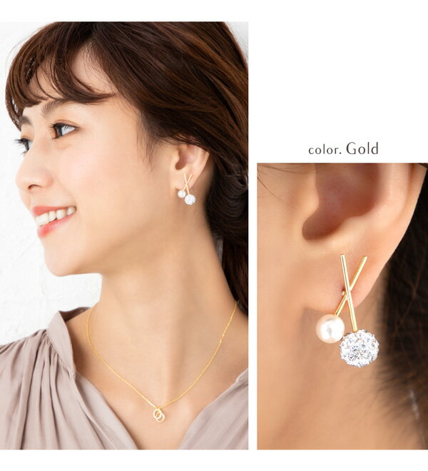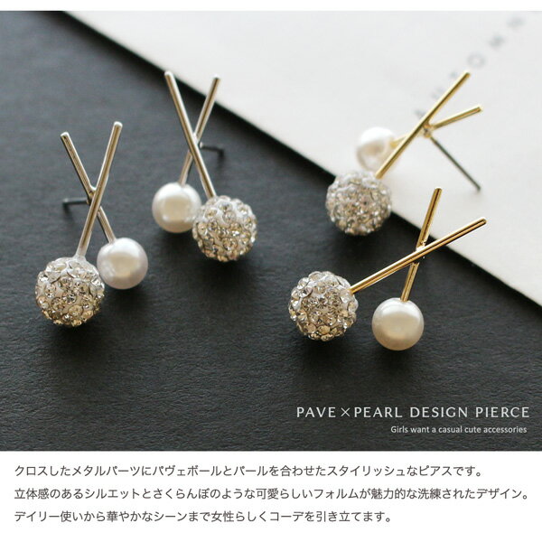 keyword :ピアス 金属アレルギー レディース チタンポスト パール パヴェ ストーン シンプル 結婚式 ブランド■□ Item information - 商品説明 - □■ クロスしたメタルパーツにパヴェボールとパールを合わせたスタイリッシュなピアスです。
