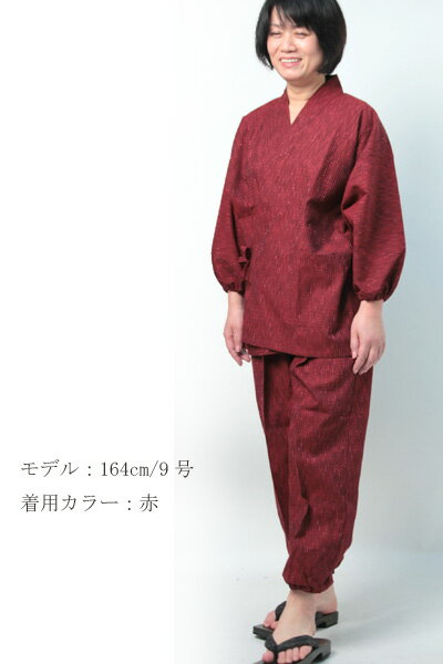 サイズ(cm) 上着丈 裄(ゆき)丈 袖幅 胴回り パンツ丈 女性用 フリーサイズ 72 69 34 (ゴムを伸ばして) 116 (ゴムを伸ばして) 96 サイズ(cm) 参考身長 参考胴回り 女性用 フリーサイズ 154〜162 64〜77 ※参考身長/胴回りには、個人差がございます。