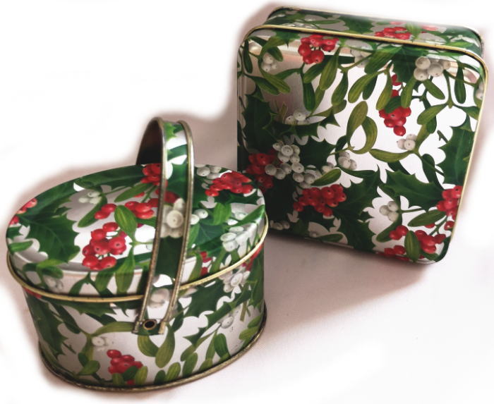 缶ボックス スクエア缶 ヒイラギとヤドリギ ELITE エリートティンボックス・缶ケース クリスマスオーナメント