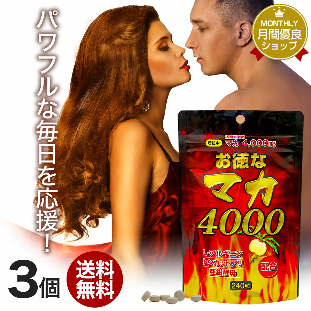 お徳なマカ4000 240粒×3個セット 約120〜180日分 送料無料 メール便 | マカ maka マカサプリメント マカサプリ マカ粒 亜鉛 亜鉛サプリメント 亜鉛サプリ ビタミンB1 セレン アルギニン トンカットアリ 妊活 任活 ミネラル サプリ サプリメント 粒 男性 女性 まとめ買い
